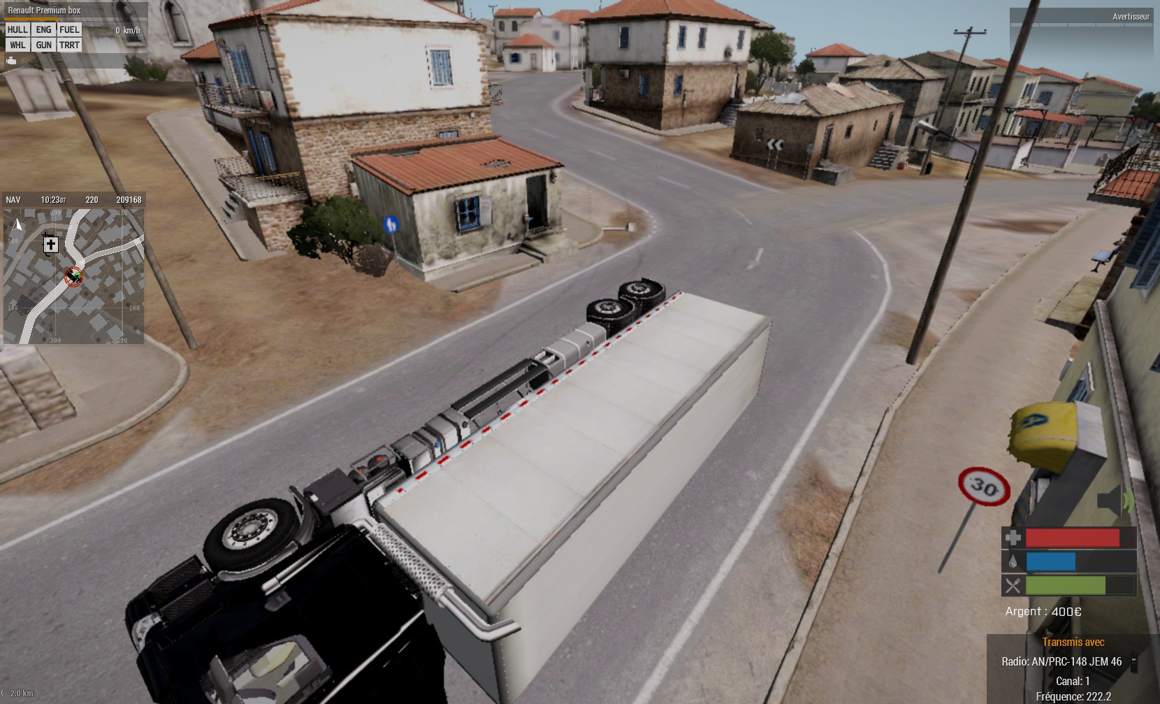 Regarde les traces de pneues, on peut observer que le virage à été coupé pour gagner un peu de temps. Une maison ou dumoins les escaliers dune maison se trouvait sur sont passage (au camion, pas moi hein, le kmion y konduisait tou sel)